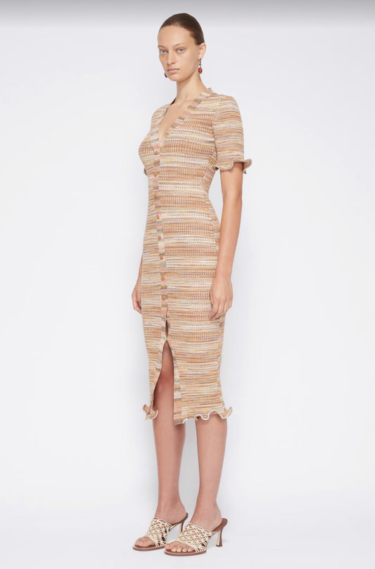 JOEI COTTON COMPACT SPACE DYE S/S HENLEY MIDI DRESS