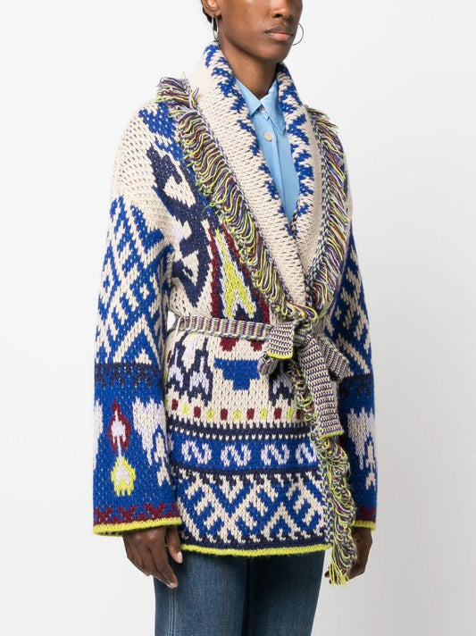 LONGLINE CARDIGAN WITH “NORTHERN LIGHT” JACQUARD PATTERN