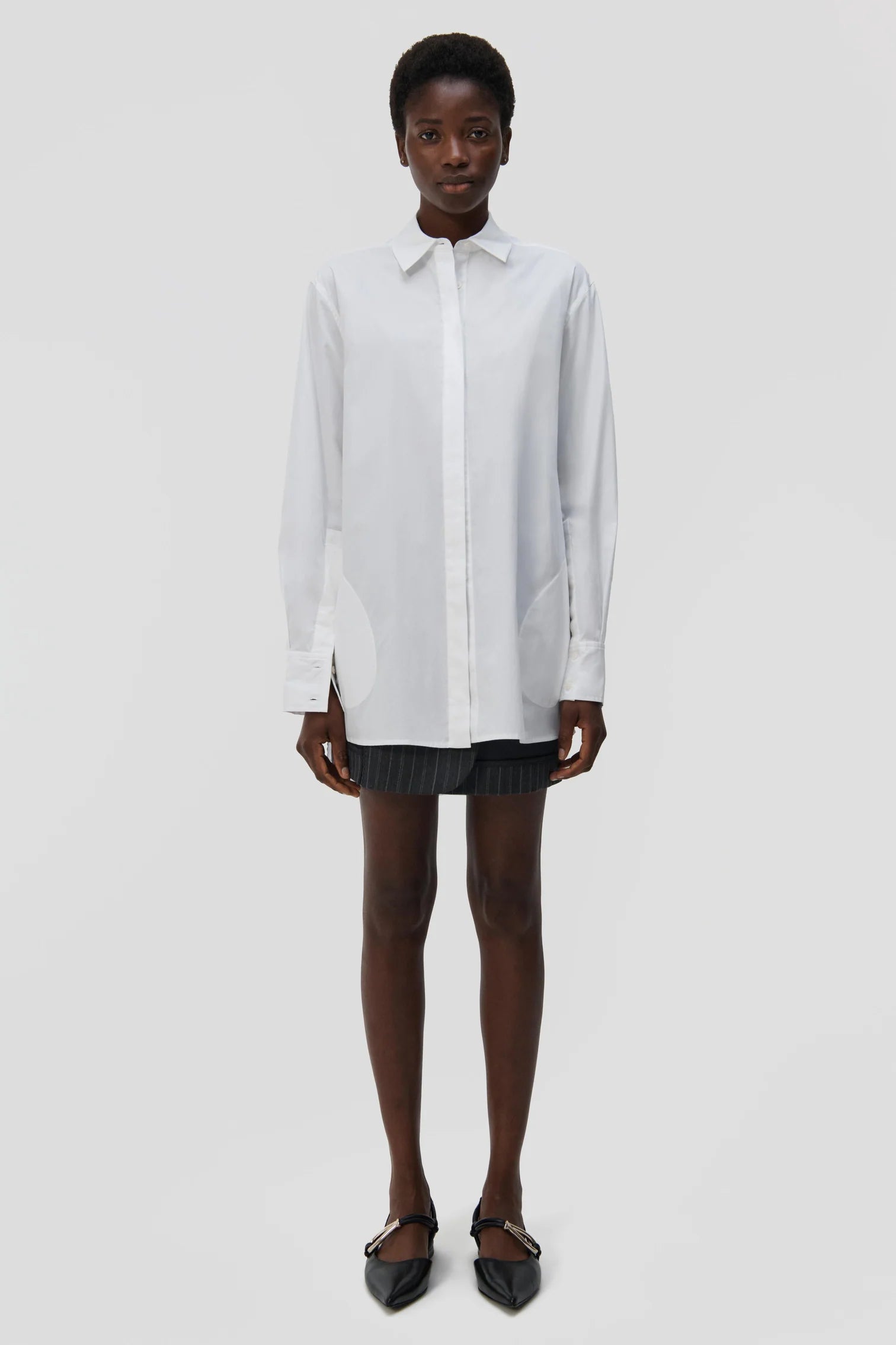 Classic cotton poplin button up shirt with an elegantly oversized fit and form forward front pocket detailing.