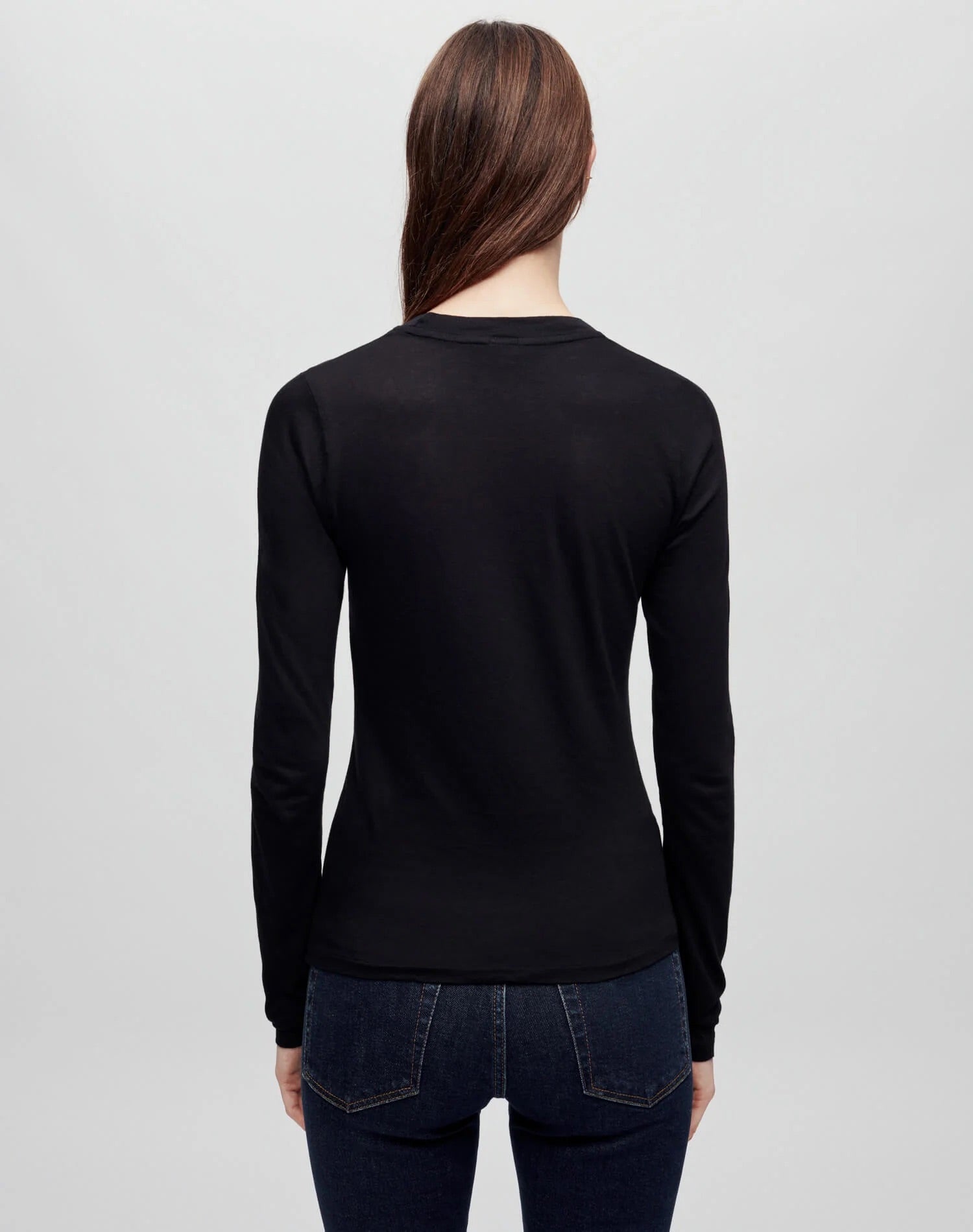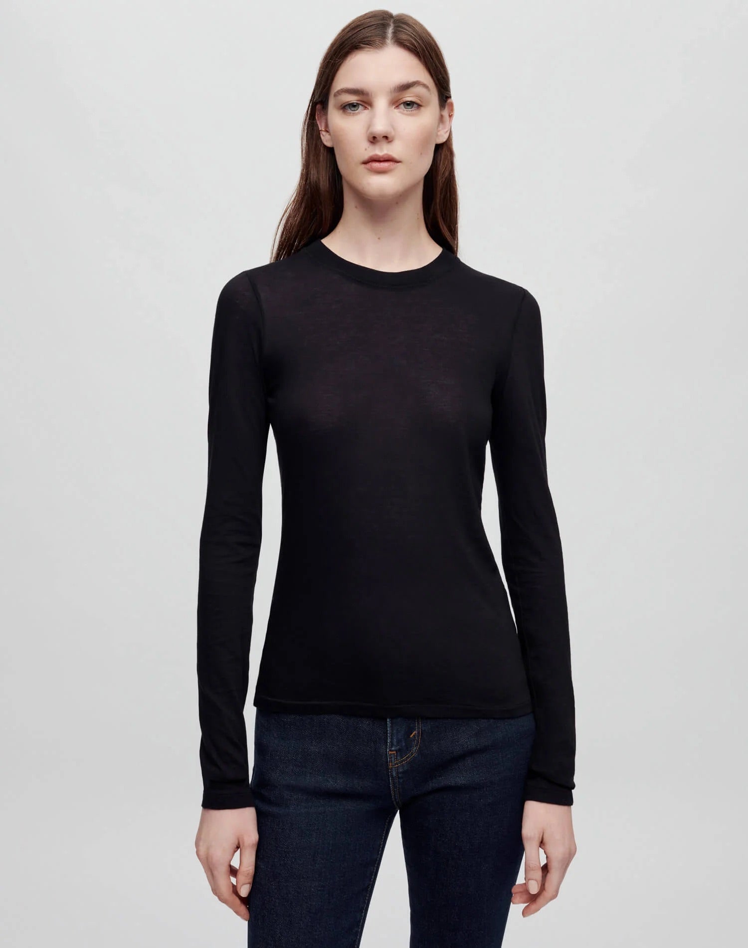 The RE/DONE | Hanes Sheer Long Sleeve in Black is our latest slim fit t-shirt silhouette, constructed in a semi-sheer, tissue-weight jersey. Each tee fits close to the body, and is perfect to wear layered or on its own.